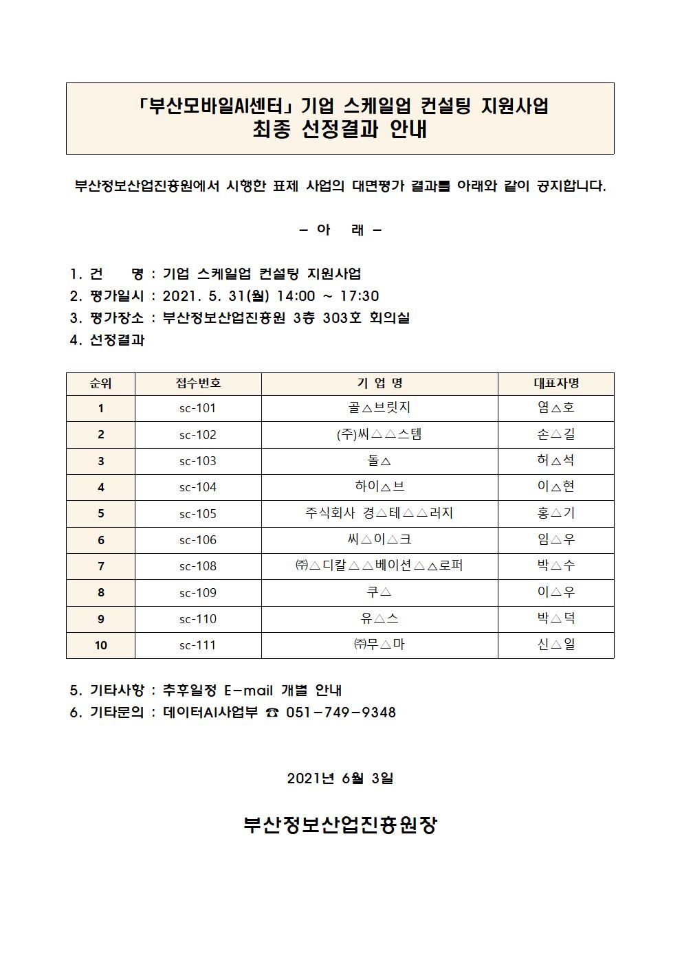 [선정결과] 부산모바일AI센터 기업 스케일업 컨설팅 지원사업