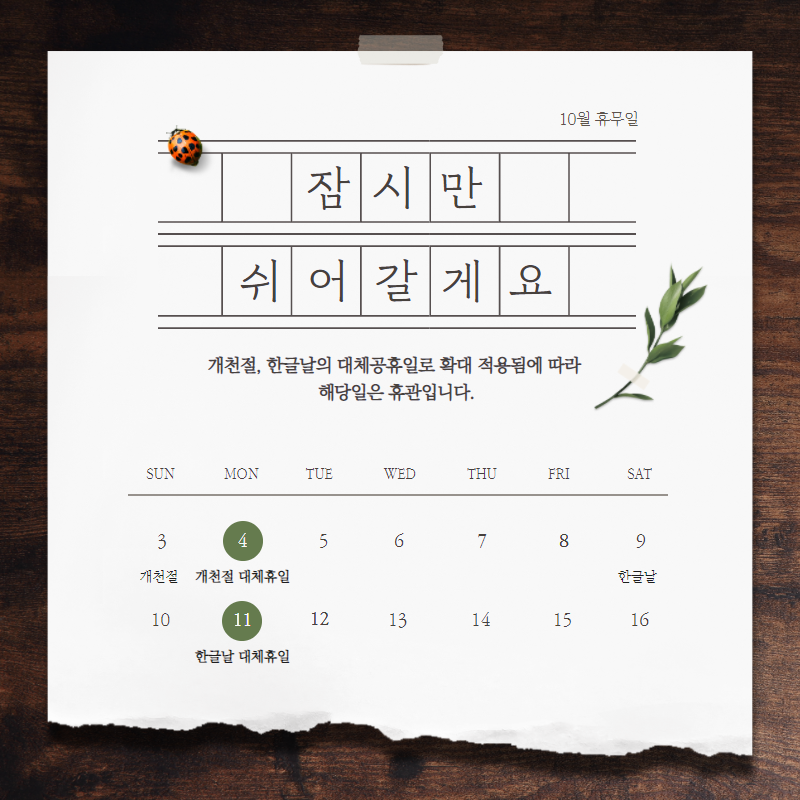 부산모바일AI센터 10월 대체휴무일로 인한 휴관 안내