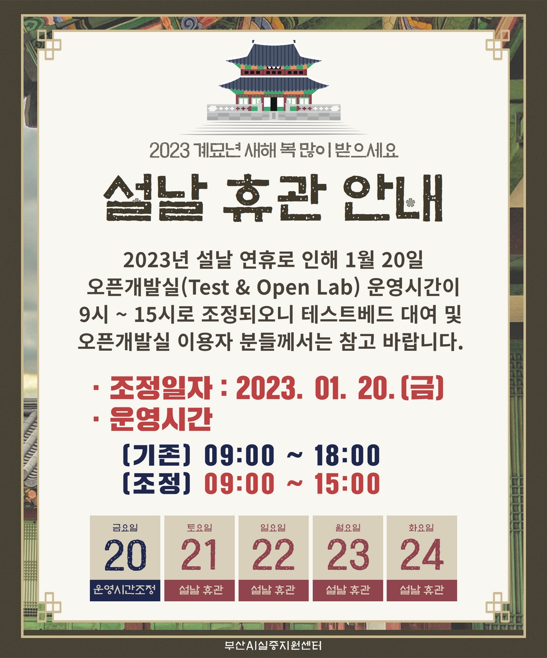 부산AI실증지원센터 1월 20일(금) 운영시간 조정 안내