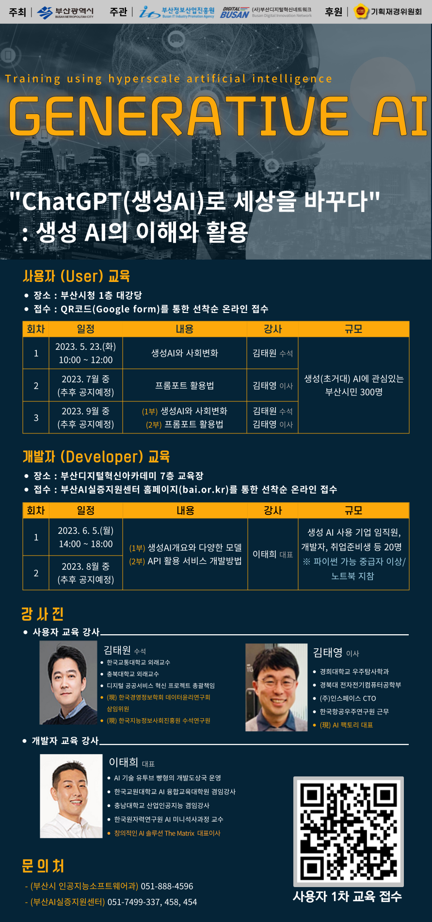 2023년 부산AI실증지원센터 생성 AI 활용 교육생 모집