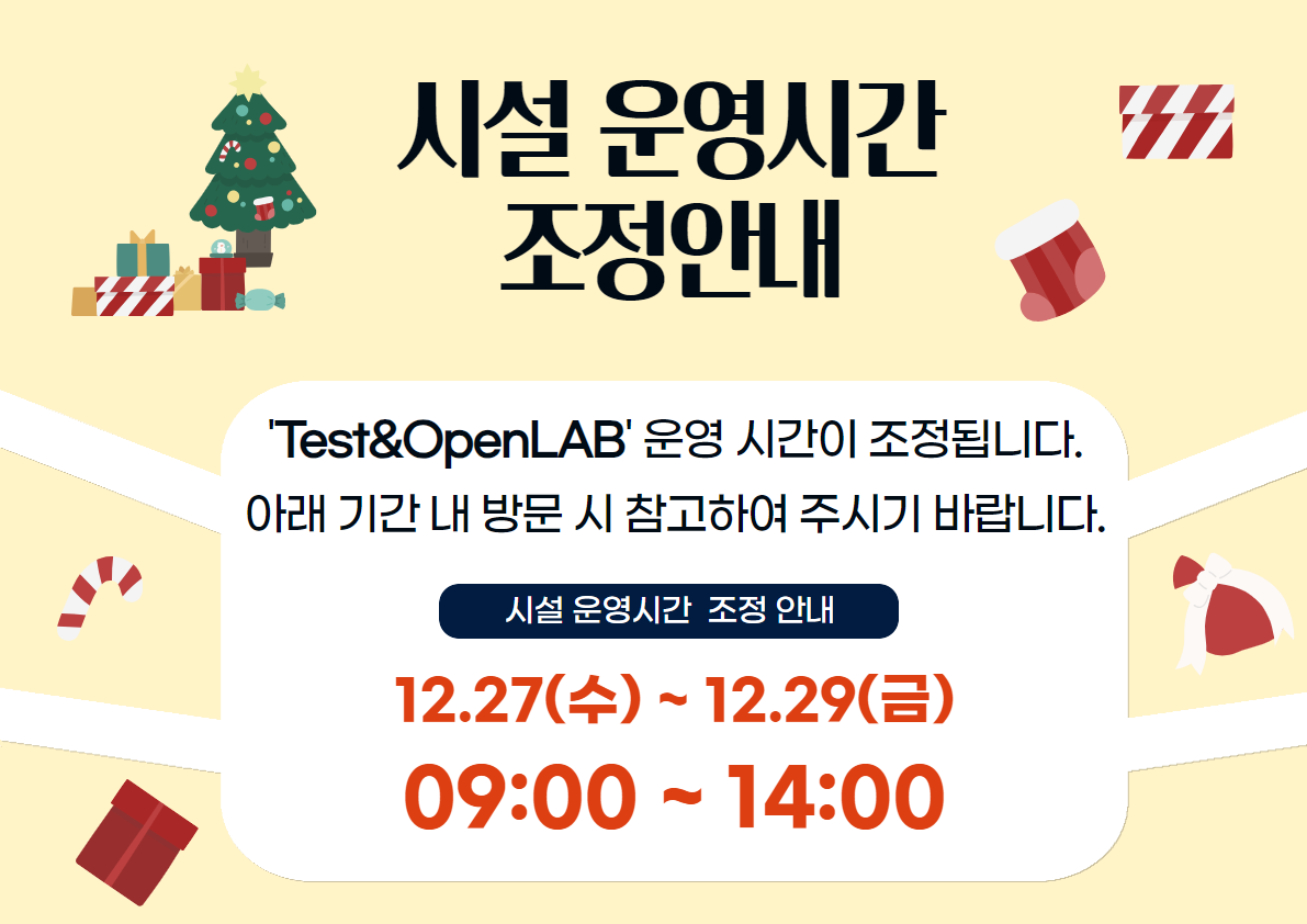 부산AI실증지원센터 OpenLaB 운영시간 조정 안내(12.27(수)~12.20(금))