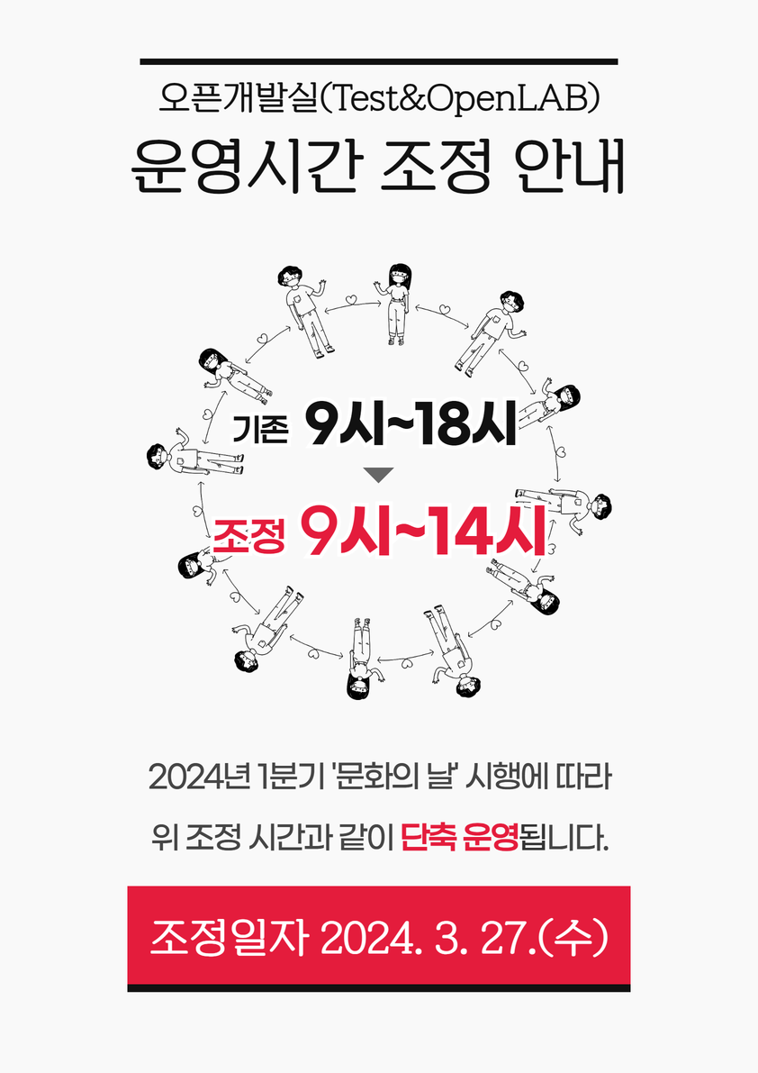 부산AI실증지원센터 Test &Open Lab 3월 27일(수) 운영시간이 9시~14시로 조정되므로,