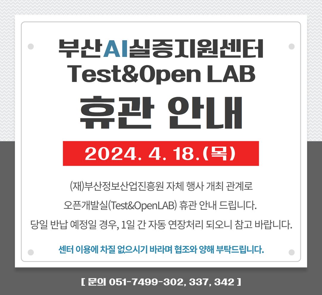 부산AI실증지원센터 4월 18일(목) 휴관 안내
